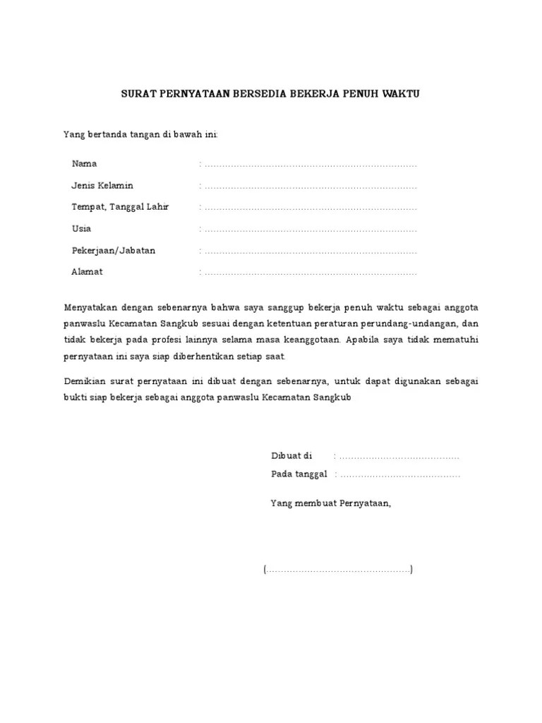 Usahakan untuk to the point dalam menulis surat penyataan. Sebelum membuat surat pernyataan, kita perlu mengenal terlebih dahulu apa itu surat pernyataan diri. Ada contoh surat pernyataan kerja, contoh surat pernyataan kesanggupan, contoh surat pernyataan belum menikah, dan contoh surat pernyataan diri. Saya yang bertanda tangan di bawah ini. Demikian ulasan tentang contoh surat pernyataan bersedia untuk tidak menikah selama menjadi peserta magang di jasa raharja.